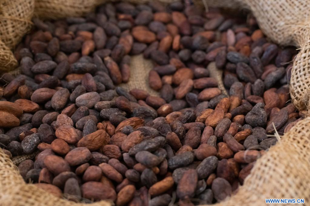 MIRANDA, 15 julio, 2022 (Xinhua) -- Imagen del 15 de julio de 2022 de granos de cacao exhibidos en un estand durante la Expoferia Cacao y Ron Miranda 2022, en el municipio de Sucre, estado Miranda, Venezuela. La feria, que se realiza por primera ocasión, reúne a productores y comercializadores de la cadena productiva de ambos rubros provenientes de todo el país. (Xinhua/Marcos Salgado)