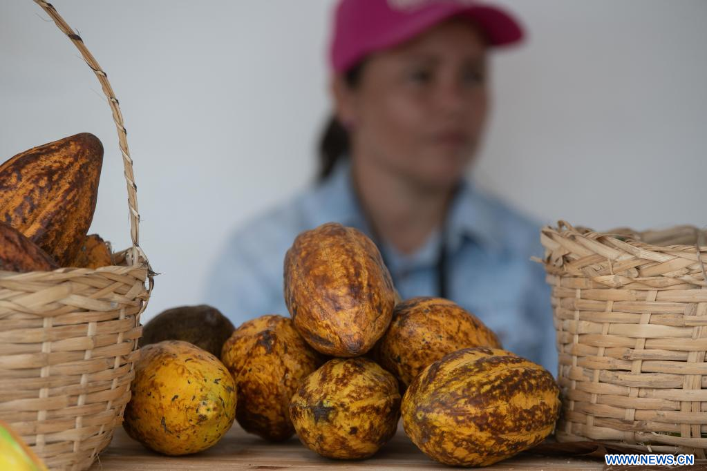 MIRANDA, 15 julio, 2022 (Xinhua) -- Imagen del 15 de julio de 2022 de frutos de cacao exhibidos en un estand durante la Expoferia Cacao y Ron Miranda 2022, en el municipio de Sucre, estado Miranda, Venezuela. La feria, que se realiza por primera ocasión, reúne a productores y comercializadores de la cadena productiva de ambos rubros provenientes de todo el país. (Xinhua/Marcos Salgado)