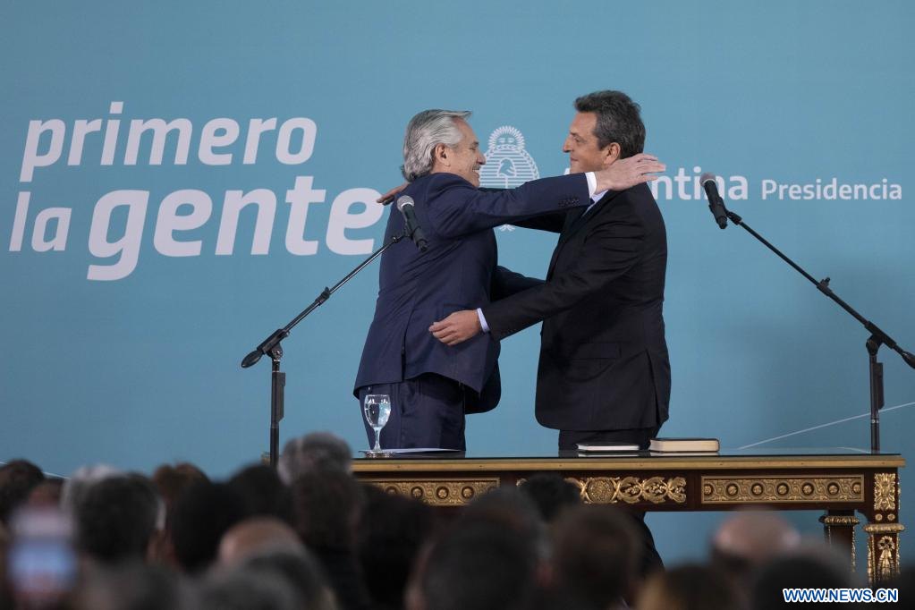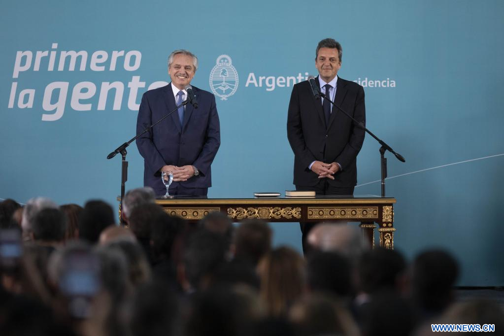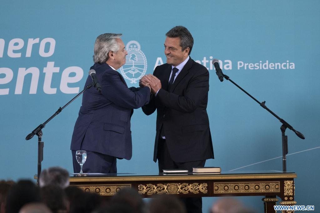BUENOS AIRES, 3 ago (Xinhua) -- El presidente de Argentina, Alberto Fernández, posesionó hoy miércoles al dirigente político Sergio Massa como nuevo ministro de Economía, Desarrollo Productivo, Agricultura, Ganadería y Pesca.