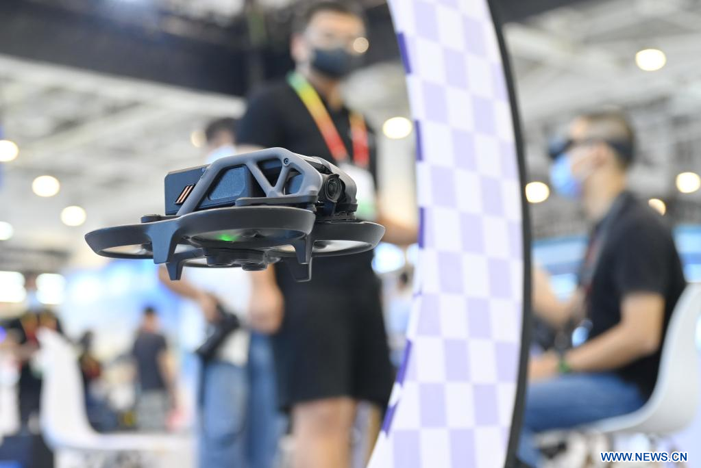 XIAMEN, 11 septiembre, 2022 (Xinhua) -- Imagen del 9 de septiembre de 2022 de visitantes probando un nuevo producto lanzado por el fabricante chino de drones DJI durante la 22ª Feria Internacional de Inversión y Comercio de China, en Xiamen, en la provincia oriental china de Fujian. (Xinhua/Lin Shanchuan)
