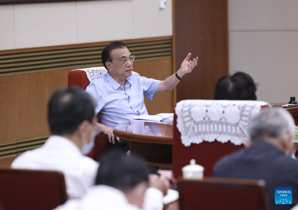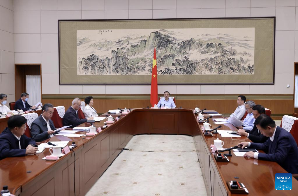 El primer ministro chino, Li Keqiang, también miembro del Comité Permanente del Buró Político del Comité Central del Partido Comunista de China (PCCh), preside una reunión especial, en Beijing, capital de China, el 8 de septiembre de 2022. Li hizo declaraciones en una reunión especial después de escuchar los informes de dos grupos de trabajo sobre la labor para estabilizar la economía. El viceprimer ministro chino, Han Zheng, también miembro del Comité Permanente del Buró Político del Comité Central del PCCh, asistió a la reunión. (Xinhua/Liu Weibing)