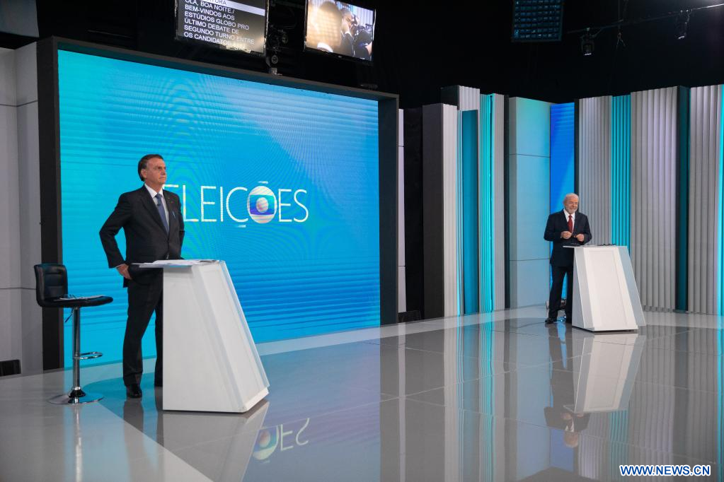 BRASILIA, 28 oct (Xinhua) -- El presidente brasileño, Jair Bolsonaro, del Partido Liberal (PL), que busca la reelección, y el ex presidente Luiz Inácio Lula da Silva (2003-2010), del Partido de los Trabajadores (PT), trabaron en la noche del viernes el último debate televisivo antes de la segunda vuelta electoral prevista para este domingo.