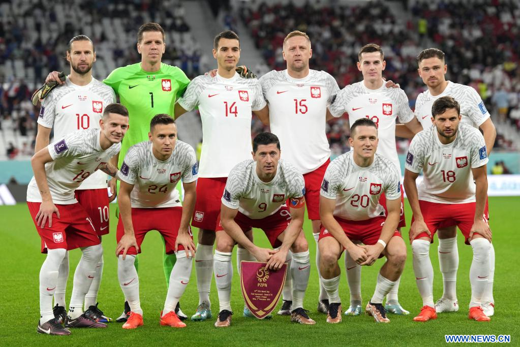 Jugadores titulares de Polonia se alínean previo al partido correspondiente a los octavos de final entre Francia y Polonia en la Copa Mundial de la FIFA 2022, en el Estadio Al Thumama, en Doha, Qatar, el 4 de diciembre de 2022. (Xinhua/Zheng Huansong)