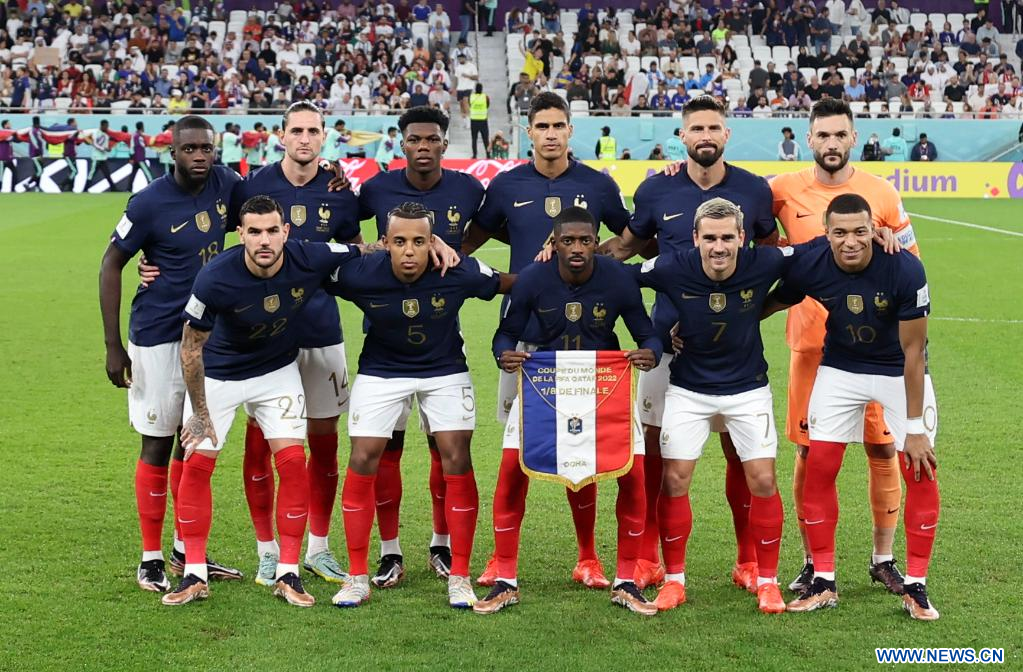 Jugadores titulares de Francia se alínean previo al partido correspondiente a los octavos de final entre Francia y Polonia en la Copa Mundial de la FIFA 2022, en el Estadio Al Thumama, en Doha, Qatar, el 4 de diciembre de 2022. (Xinhua/Cao Can)