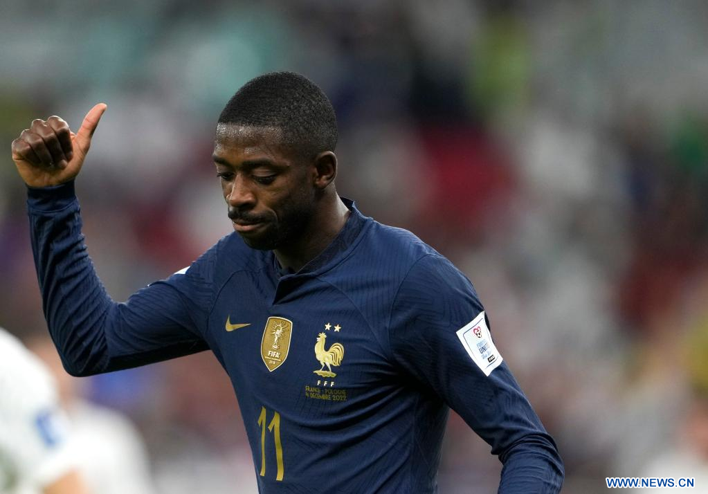 Ousmane Dembele, de Francia, reacciona durante el partido correspondiente a los octavos de final entre Francia y Polonia en la Copa Mundial de la FIFA 2022, en el Estadio Al Thumama, en Doha, Qatar, el 4 de diciembre de 2022. (Xinhua/Zheng Huansong)