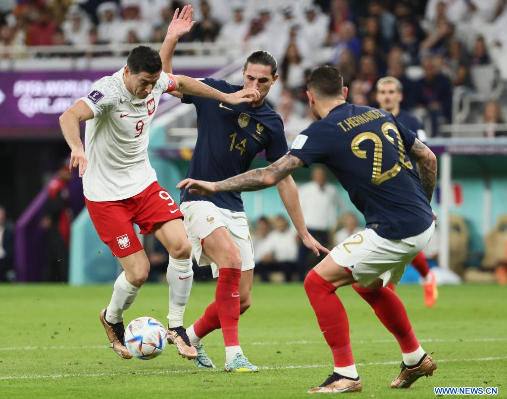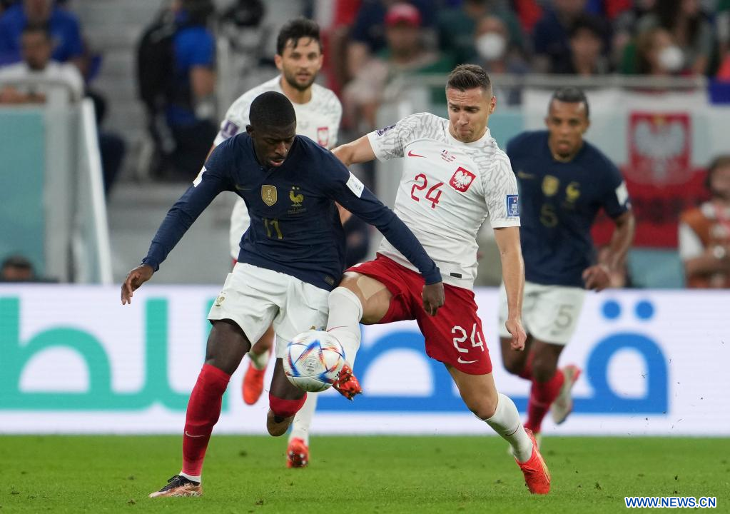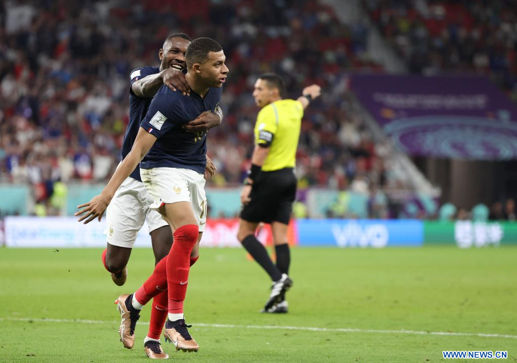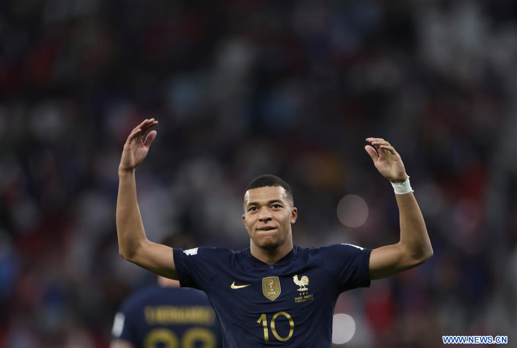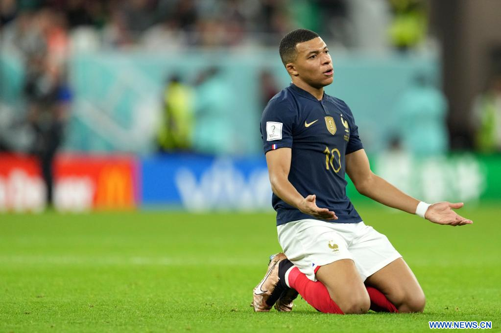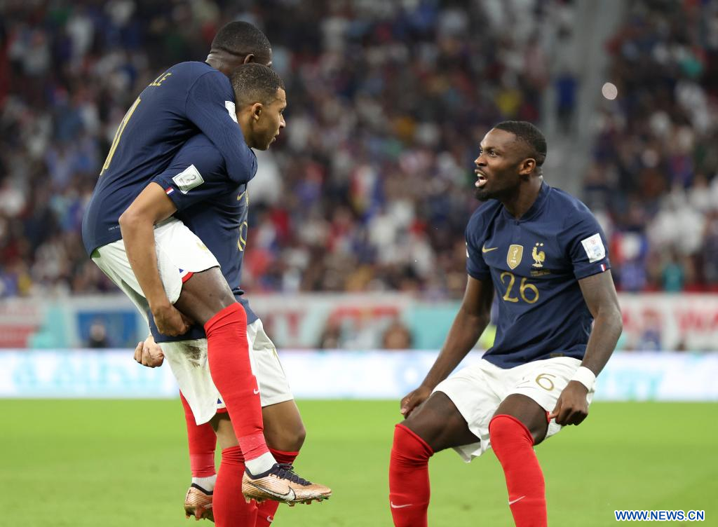 DOHA, 5 dic (Xinhua) -- Kylian Mbappe anotó dos goles y contribuyó a otro para que Francia, campeona defensora, avanzara a los cuartos de final de la Copa Mundial con una victoria de 3-1 sobre Polonia el domingo en Doha.
