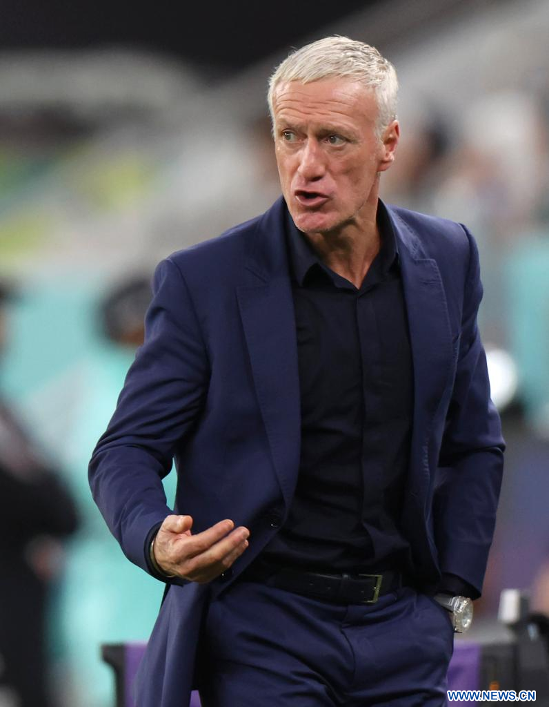 Didier Deschamps, director técnico de Francia, gesticula durante el partido correspondiente a los octavos de final entre Francia y Polonia en la Copa Mundial de la FIFA 2022, en el Estadio Al Thumama, en Doha, Qatar, el 4 de diciembre de 2022. (Xinhua/Cao Can)