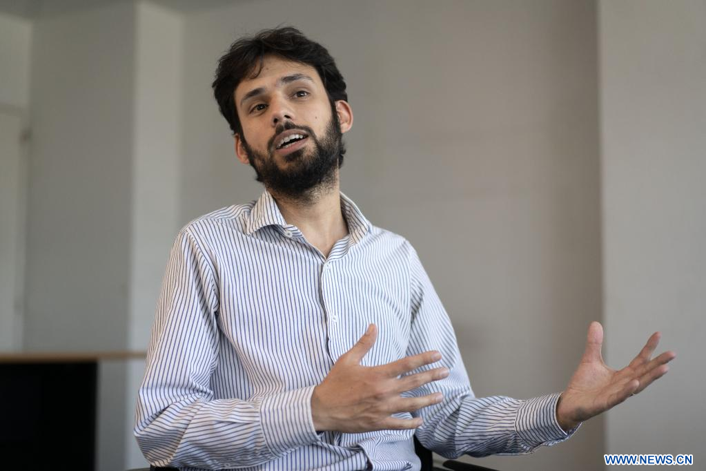 BUENOS AIRES, 14 enero 2023 (Xinhua) -- Imagen del 13 de enero de 2023 del economista e investigador argentino Pablo Menéndez Portela hablando durante una entrevista con la Agencia de Noticias Xinhua, en la ciudad de Buenos Aires, capital de Argentina. Un alto nivel de endeudamiento acompañado de escasez de divisas y un conjunto de factores externos forman parte de las causas que explican que la inflación en Argentina alcanzara cerca del 95 por ciento en el 2022, la más alta desde el año 1991, expresó el viernes Menéndez Portela. (Xinhua/Martín Zabala)