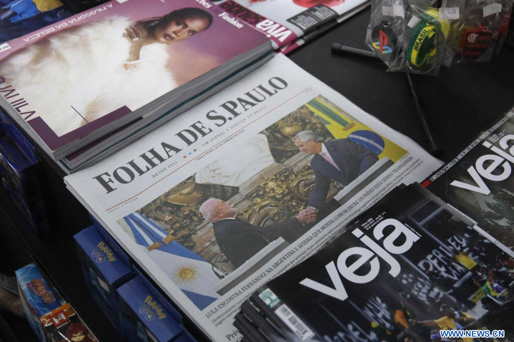 SAO PAULO, 24 enero, 2023 (Xinhua) -- Imagen del 24 de enero de 2023 de la portada de un periódico a la venta, en Sao Paulo, Brasil. Los presidentes de Argentina, Alberto Fernández, y de Brasil, Luiz Inácio "Lula" da Silva, confirmaron el domingo que avanzan en el establecimiento de una moneda común sudamericana, en la antesala al encuentro que llevaron a cabo el lunes ambos mandatarios en territorio argentino. (Xinhua/Rahel Patrasso)