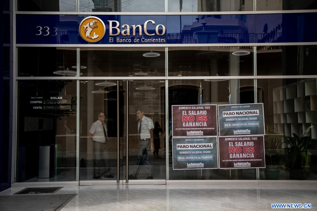 BUENOS AIRES, 23 feb (Xinhua) -- Trabajadores del sector bancario en Argentina protagonizan hoy jueves un paro nacional de 24 horas en reclamo de una mejora salarial y en rechazo al impuesto a las ganancias que recae sobre los empleados del país.