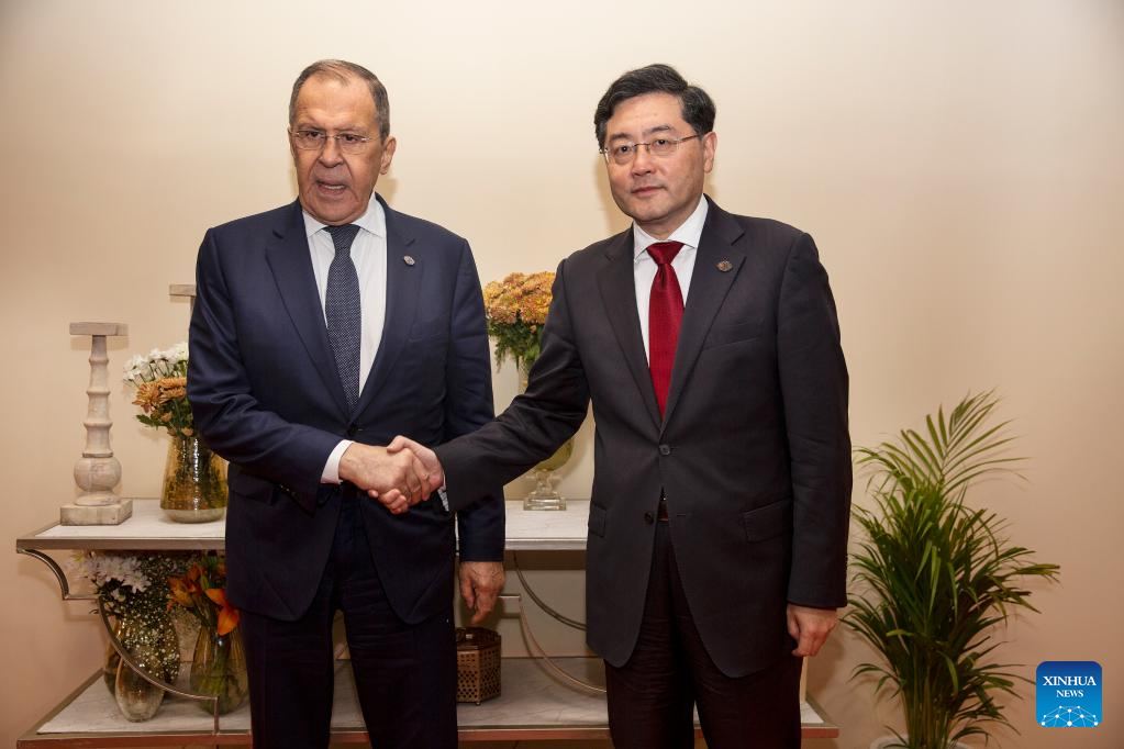 NUEVA DELHI, 2 mar (Xinhua) -- El ministro de Relaciones Exteriores de China, Qin Gang, se reunió hoy jueves con su homólogo de Rusia, Sergei Lavrov, con quien conversó sobre las relaciones bilaterales y una solución política a la crisis de Ucrania al margen de la Reunión de Ministros de Relaciones Exteriores del Grupo de los 20 (G20), celebrada en Nueva Delhi, capital de India.