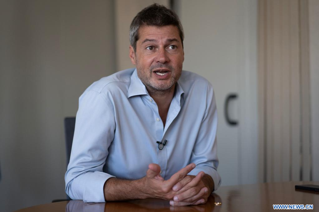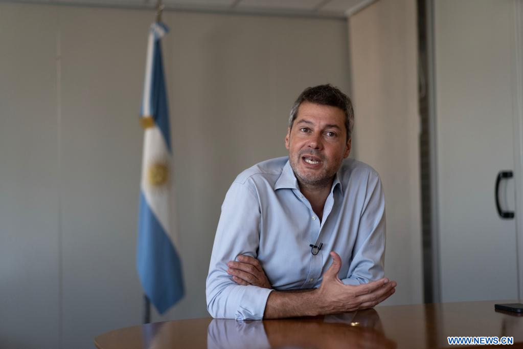 BUENOS AIRES, 17 marzo, 2023 (Xinhua) -- Imagen del 3 de marzo de 2023 del ministro de Turismo y Deportes de Argentina, Matías Lammens, hablando durante una entrevista con la Agencia de Noticias Xinhua, en la ciudad de Buenos Aires, capital de Argentina. A fin de dar un renovado impulso al floreciente sector turístico nacional, Argentina espera con amplia expectativa la llegada de viajeros chinos, y para ello ha preparado propuestas vinculadas a la naturaleza, la gastronomía y la cultura que tienen en cuenta los gustos y las necesidades de dicho mercado. (Xinhua/Martín Zabala)