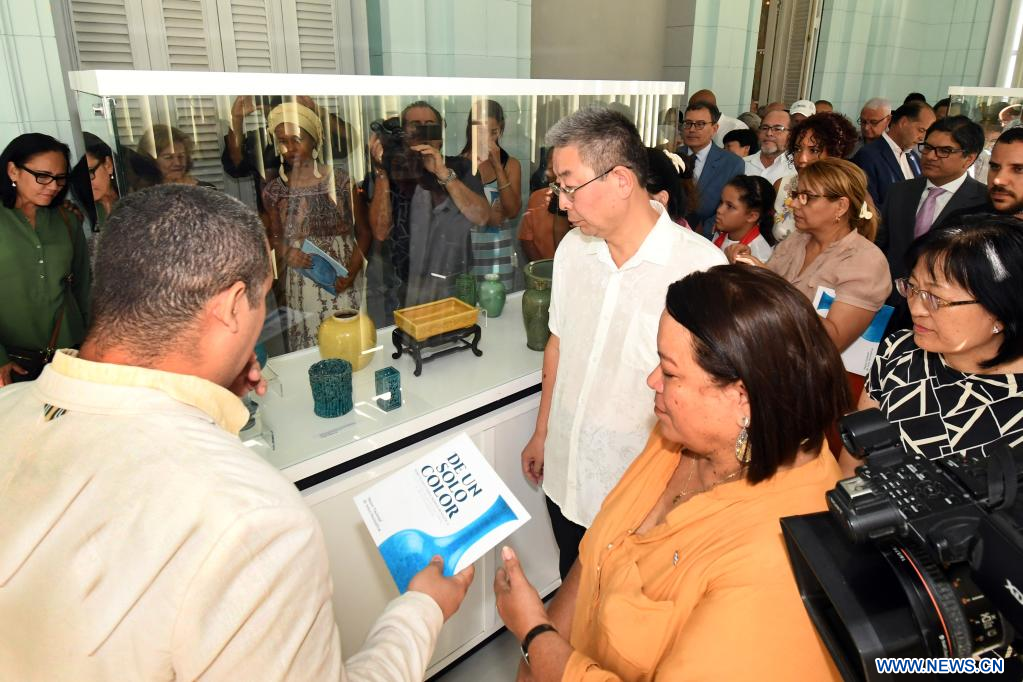 LA HABANA, 16 mar (Xinhua) -- Una exposición titulada "De un solo color" con antiguas piezas monocromáticas de porcelana china se inauguró hoy jueves en Cuba en conmemoración del décimo aniversario de la Iniciativa de la Franja y la Ruta.
