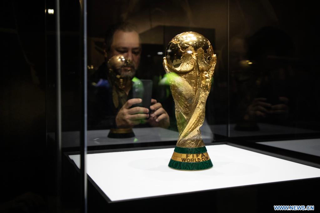 BUENOS AIRES, 5 abril, 2023 (Xinhua) -- Un hombre toma una fotografía a la Copa del Mundo obtenida por la selección de fútbol de Argentina en la Copa Mundial de Qatar 2022 en la exposición oficial de la Asociación del Fútbol Argentino "Campeones del Mundo" en el predio ferial La Rural, en Buenos Aires, Argentina, el 5 de abril de 2023. (Xinhua/Martín Zabala)
