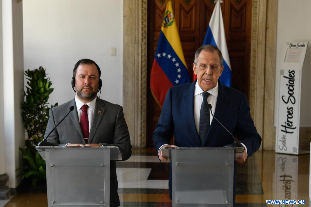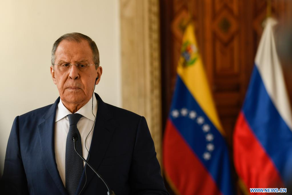 CARACAS, 18 abril, 2023 (Xinhua) -- El ministro de Relaciones Exteriores de Rusia, Serguéi Lavrov, asiste a una conferencia de prensa en la Casa Amarilla, en Caracas, Venezuela, el 18 de abril de 2023. (Xinhua/Marcos Salgado)