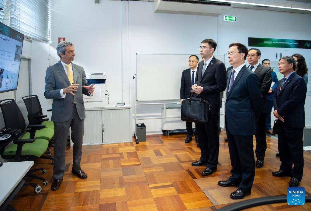 Acompañado por Gouveia, Han inspeccionó el lunes el Centro de Investigación y Desarrollo de Redes Energéticas Nacionais SGPS SA (REN), el operador de la red eléctrica nacional de Portugal en Lisboa.