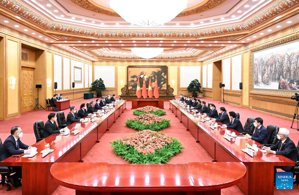 Al indicar que el desarrollo de China ha hecho importantes contribuciones a la estabilidad y la prosperidad regionales y mundiales, Pham mencionó que Vietnam defiende firmemente el principio de una sola China, y apoya activamente la Iniciativa de la Franja y la Ruta y la Iniciativa para el Desarrollo Global. Dijo que Vietnam está dispuesto a profundizar los intercambios y la cooperación con China en áreas como la economía y el comercio, la inversión, la construcción de infraestructuras, la salud, la tecnología y los intercambios entre personas, para lograr el desarrollo y la prosperidad comunes.