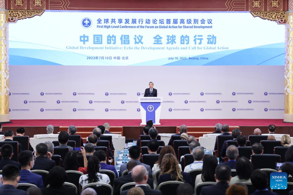 En favor de la causa del desarrollo global, los pueblos de todos los países deben trabajar juntos, compartir y discutir los planes de desarrollo, crear una configuración de desarrollo, compartir los logros del desarrollo y proyectar la gobernanza del desarrollo, agregó Wang.