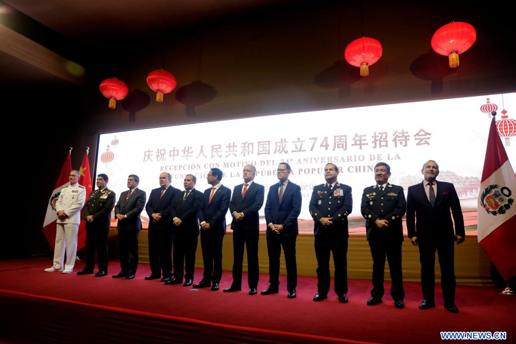 LIMA, 27 sep (Xinhua) -- Con motivo del 74° aniversario de la fundación de la República Popular China (RPC), diversos altos funcionarios destacaron la fortaleza de los nexos diplomáticos y los importantes avances en materia económica, comercial y cultural entre China y Perú durante una ceremonia celebrada este miércoles en la sede de la misión diplomática del país asiático en Lima.