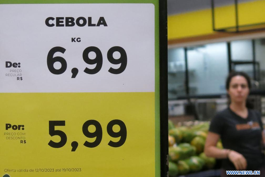 Una mujer compra en un supermercado, en Sao Paulo, Brasil, el 17 de octubre de 2023. El mercado financiero brasileño disminuyó de 4,86 a 4,75 por ciento la previsión de inflación en 2023 y la mantuvo en 3,88 por ciento para 2024, divulgó el lunes el Banco Central de Brasil. (Xinhua/Rahel Patrasso)