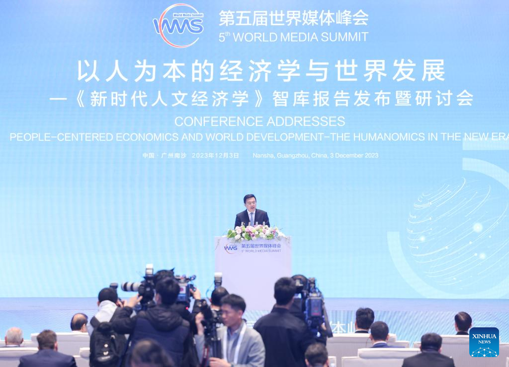 GUANGZHOU, 3 dic (Xinhua) -- La Agencia de Noticias Xinhua dio a conocer hoy domingo un informe de investigación durante la actual V Cumbre Mundial de Medios, que aclara la práctica de China de un nuevo formato de desarrollo que subraya la relación simbiótica entre humanidades y economía.