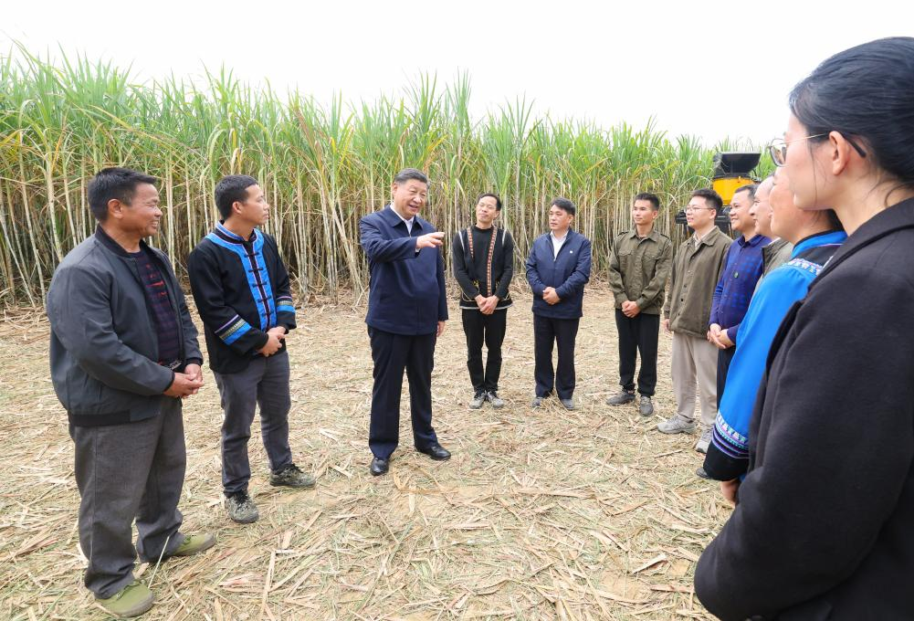El jueves por la tarde, Xi inspeccionó la ciudad de Laibin. Durante su visita a una base de caña de azúcar en la ciudad, indicó que Guangxi, la principal base de producción de azúcar de caña del país, debe desarrollar aún más su característica industria azucarera con el fin de desempeñar un papel más importante en la garantía de la seguridad nacional del azúcar y el aumento de los ingresos de los agricultores de caña de azúcar.