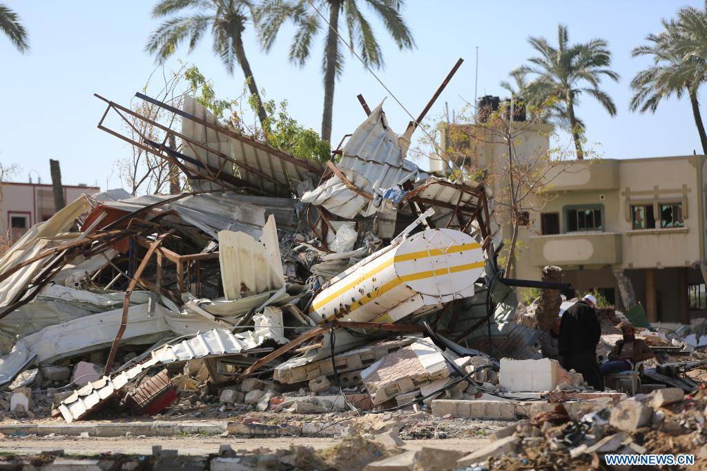 DEIR EL-BALAH, 2 marzo, 2024 (Xinhua) -- Imagen del 1 de marzo de 2024 de edificios en ruinas, en la ciudad de Deir el-Balah, en el centro de la Franja de Gaza. La cifra de palestinos muertos en la Franja de Gaza aumentó a 30.320, dijo el sábado el Ministerio de Sanidad dirigido por Hamás en un comunicado de prensa. (Xinhua)