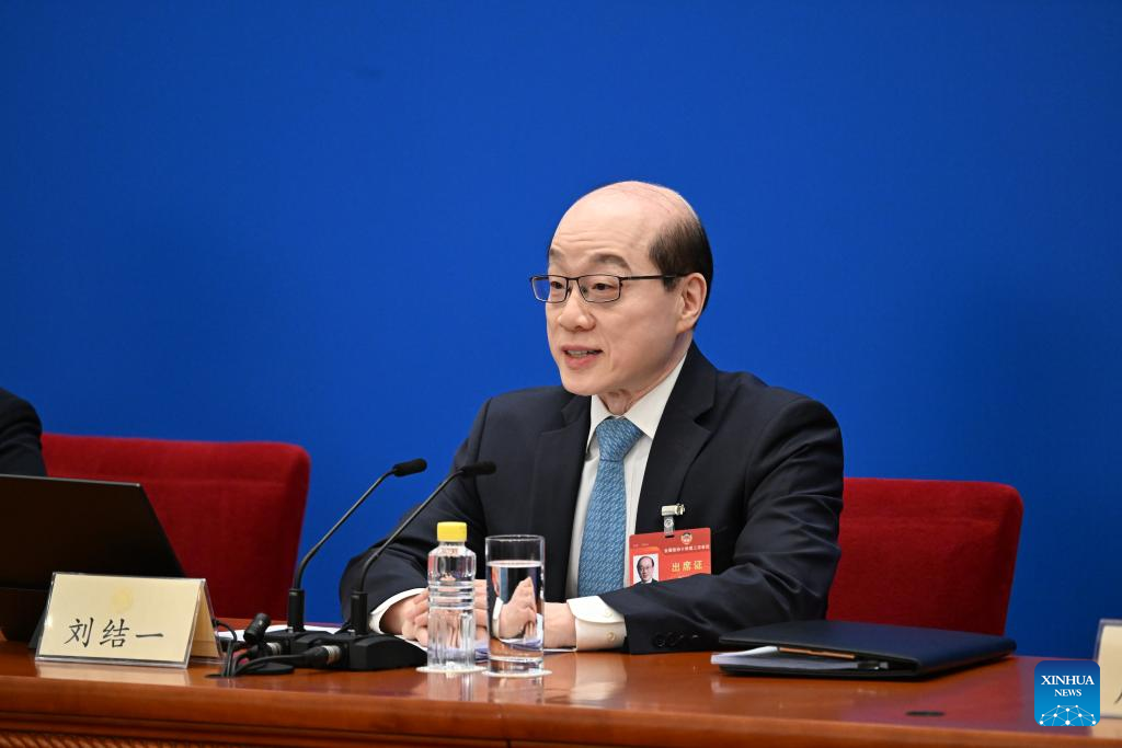 Liu Jieyi, portavoz de la segunda sesión del XIV Comité Nacional de la CCPPCh, informó a la prensa sobre la sesión.