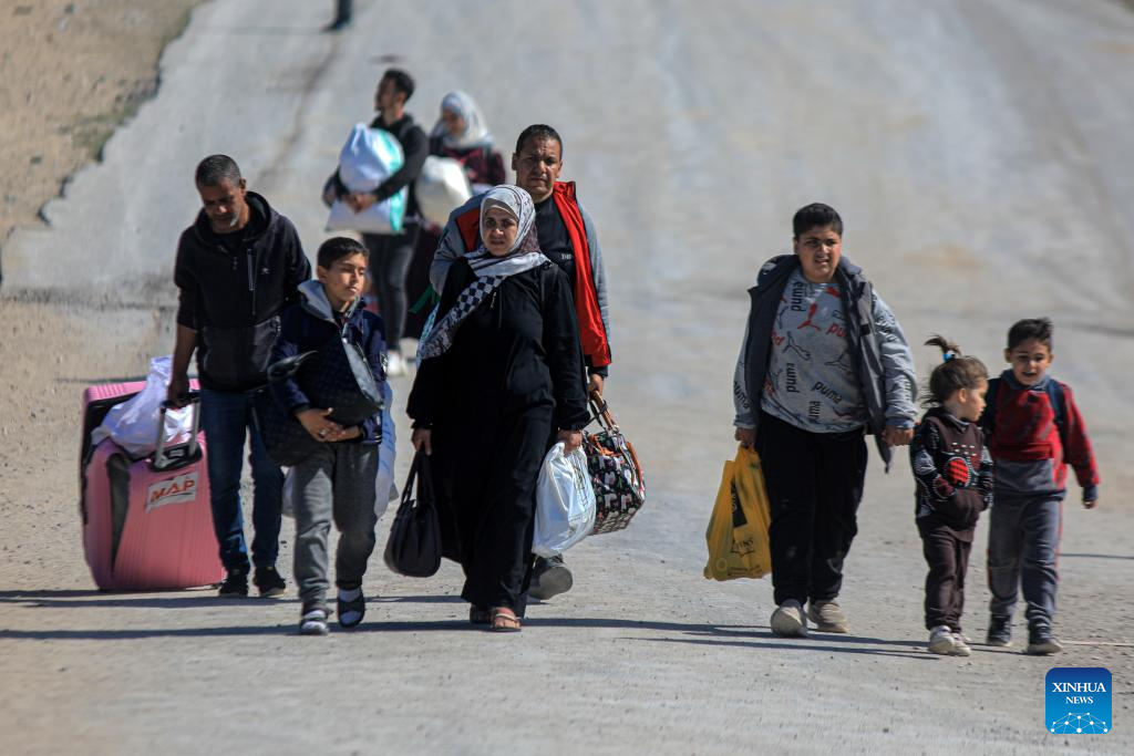 Personas huyen de sus hogares, en la ciudad de Khan Younis, en el sur de la Franja de Gaza, el 4 de marzo de 2024. De acuerdo con una declaración del Ministerio de Salud dirigido por Hamás el lunes, las fuerzas de Israel asesinaron a 124 palestinos e hirieron a otros 210 durante las últimas 24 horas, incrementando el número total de muertos a 30.534 y heridos a 71.920 desde que comenzó el conflicto en Gaza, el 7 de octubre de 2023. (Xinhua/Rizek Abdeljawad)