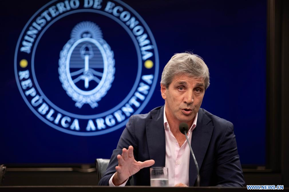 BUENOS AIRES, 17 marzo, 2024 (Xinhua) -- Imagen del 10 de enero de 2024 del ministro de Economía argentino, Luis Caputo, hablando durante una conferencia de prensa ofrecida en el microcine del Palacio de Hacienda, en la ciudad de Buenos Aires, Argentina. Ajuste del gasto público, medidas de "choque" y confrontación política con gobernadores o partidos de oposición han marcado los primeros 100 días del Gobierno del liberal Javier Milei en Argentina, según la opinión de analistas del país sudamericano consultados por Xinhua. (Xinhua/Martín Zabala)
