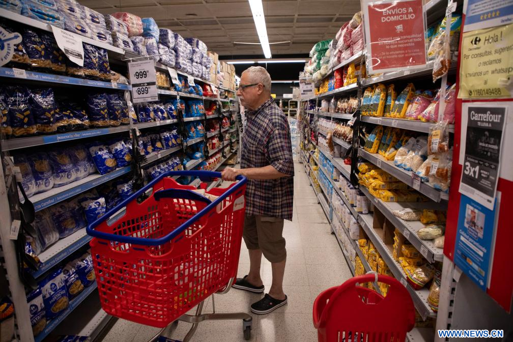 BUENOS AIRES, 17 marzo, 2024 (Xinhua) -- Imagen del 9 de enero de 2024 de un hombre realizando una compra en un supermercado, en la ciudad de Buenos Aires, Argentina. Ajuste del gasto público, medidas de "choque" y confrontación política con gobernadores o partidos de oposición han marcado los primeros 100 días del Gobierno del liberal Javier Milei en Argentina, según la opinión de analistas del país sudamericano consultados por Xinhua. (Xinhua/Martín Zabala)