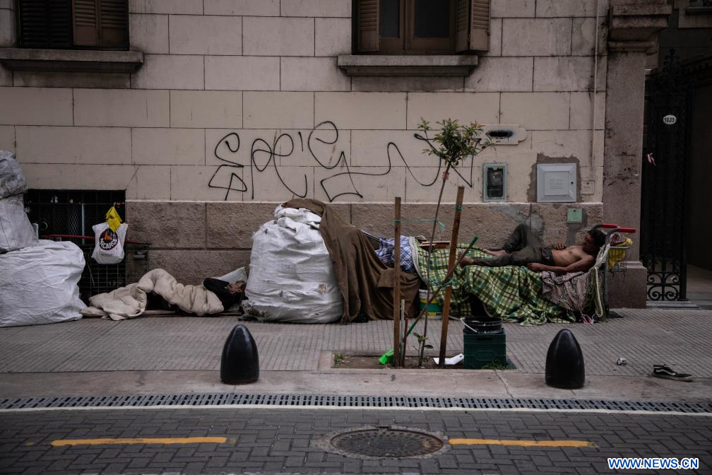 BUENOS AIRES, 17 marzo, 2024 (Xinhua) -- Imagen del 3 de enero de 2024 de personas en situación de calle durmiendo sobre una banqueta, en la ciudad de Buenos Aires, Argentina. Ajuste del gasto público, medidas de "choque" y confrontación política con gobernadores o partidos de oposición han marcado los primeros 100 días del Gobierno del liberal Javier Milei en Argentina, según la opinión de analistas del país sudamericano consultados por Xinhua. (Xinhua/Martín Zabala)