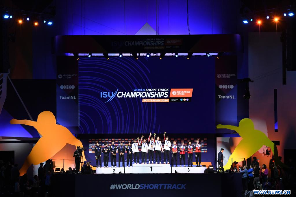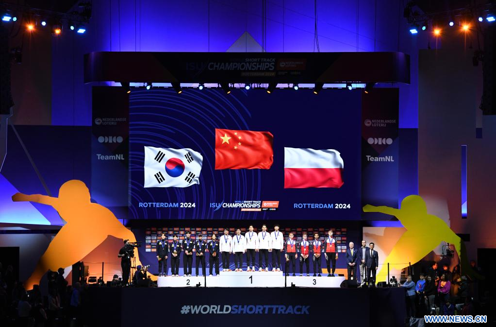 RÓTERDAM, 17 mar (Xinhua) -- Los patinadores chinos terminaron el Campeonato Mundial de Róterdam con estilo hoy domingo luego de que el equipo varonil defendiera el título de relevo de 5.000 metros para ganar la cuarta medalla de oro de China en el torneo.