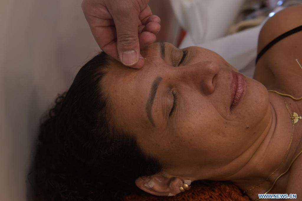Un médico especializado en medicina tradicional china realiza una sesión de acupuntura a una persona durante el II Congreso Internacional de Medicina Tradicional China (MTC), en Brasilia, Brasil, el 23 de marzo de 2024. Con la participación de destacadas personalidades, inició el jueves en el Centro Internacional de Convenciones de Brasilia el II Congreso Internacional de MTC, que se llevará a cabo del 21 al 23 de marzo con el lema: "Integrando Prevención, Promoción y Sostenibilidad en los Sistemas de Salud". (Xinhua/Lucio Tavora)
