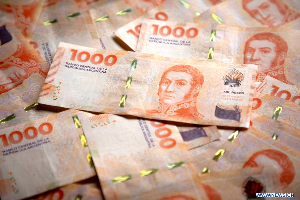 BUENOS AIRES, 12 abril, 2024 (Xinhua) -- Imagen del 11 de abril de 2024 de de billetes de mil pesos argentinos, en la ciudad de Buenos Aires, Argentina. Argentina registró una inflación de 287,9 por ciento interanual y 11 por ciento mensual en marzo pasado, según informó el viernes el Instituto Nacional de Estadística y Censos. (Xinhua/Martín Zabala)