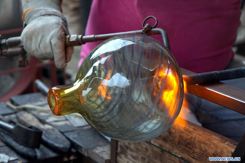 "Cuando comenzamos aquí, en el 2013, no había nada", contó el artista a Xinhua, mientras mostraba tres hornos y varias herramientas fabricadas por él mismo, con los cuales crea piezas de vidrio soplado en la actualidad.