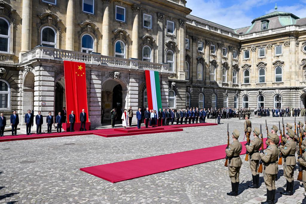 BUDAPEST, 9 may (Xinhua) -- El presidente chino, Xi Jinping, asistió hoy jueves a una ceremonia de bienvenida organizada conjuntamente por el presidente húngaro, Tamás Sulyok, y el primer ministro, Viktor Orbán.