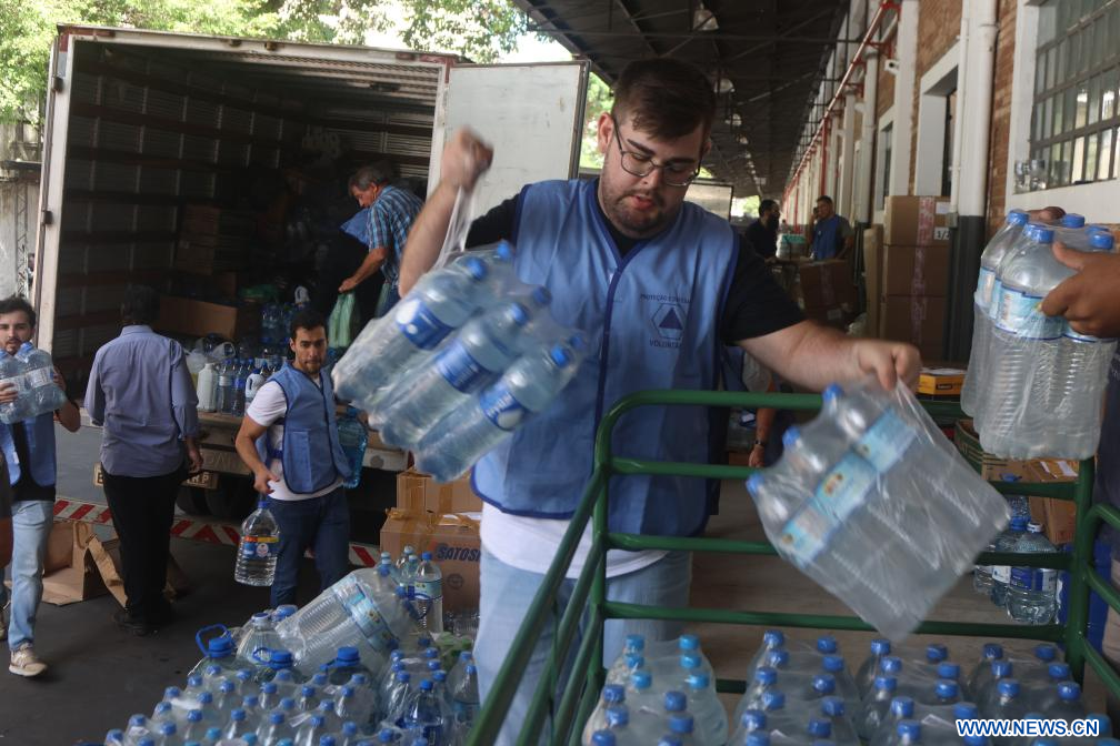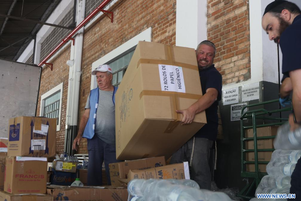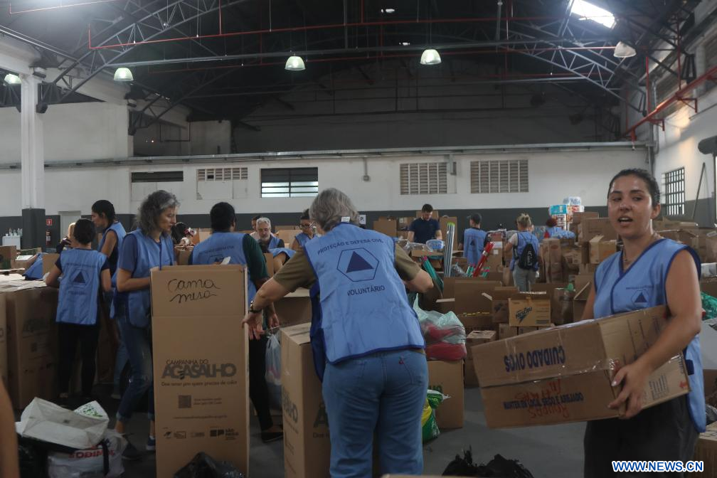 Voluntarios trabajan en la sede del fondo social del Gobierno del Estado de Sao Paulo recibiendo, seleccionando y entregando donaciones a las víctimas del estado de Rio Grande do Sul, en Sao Paulo, Brasil, el 9 de mayo de 2024. Se elevaron a 107 las víctimas fatales a causa de las intensas lluvias y las inundaciones registradas en el estado de Rio Grande do Sul, en la región sur de Brasil, desde finales de abril pasado, luego de que las autoridades locales confirmaron otros siete decesos en las últimas horas, informó el jueves la Defensa Civil. (Xinhua/Rahel Patrasso)