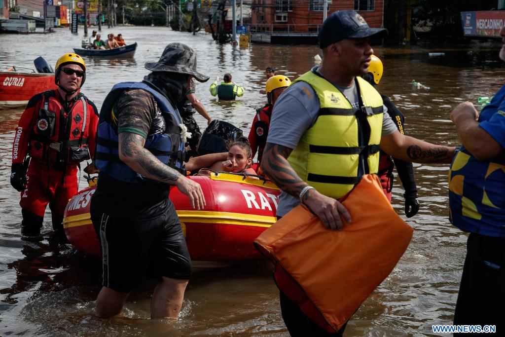 Las severas inundaciones son consecuencia de las históricas lluvias que provocaron la crecida de ríos, lo que dejó al 80 por ciento del estado fronterizo con Argentina y Uruguay en situación de emergencia, incluida la capital estatal, Porto Alegre, que también tuvo afectaciones importantes por el desborde del río Guaíba.
