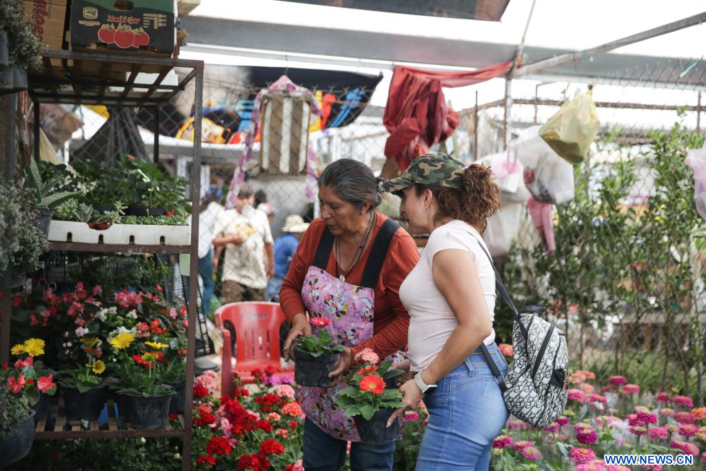 MÉXICO, 9 may (Xinhua) -- Esfuerzo, lucha y satisfacción han sido los ejes principales en la vida de la floricultora Elvia Cabello Martínez, una madre mexicana que ha logrado proporcionar estudios profesionales a sus hijos a través de trabajar la tierra en los campos de México.