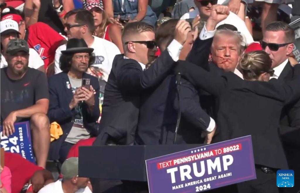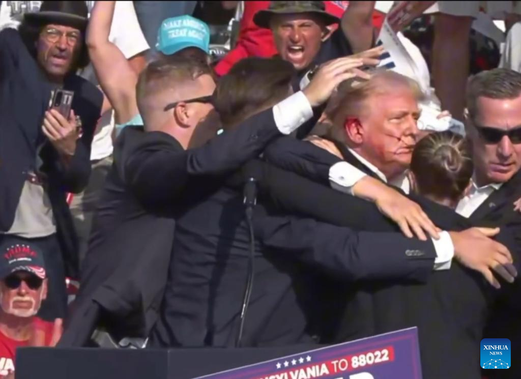 NUEVA YORK, 13 jul (Xinhua) -- El ex presidente de Estados Unidos, Donald Trump, fue sacado abruptamente del escenario durante un mitin en Butler, Pensilvania de Estados Unidos, hoy sábado después de que sonaran como disparos entre la multitud.