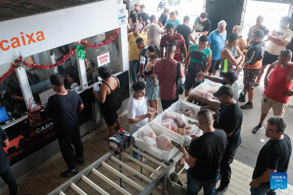 Rogerio Ribeiro, un vendedor en la Ceasa, explicó a Xinhua que cuando se acerca la Navidad, hay un aumento de la búsqueda por carne, tanto de res como de aves.