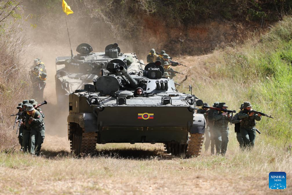 Imagen cedida por la Vicepresidencia Sectorial de Defensa y Soberanía de Venezuela de integrantes de la Fuerza Armada Nacional Bolivariana de Venezuela participando en los ejercicios militares Escudo Bolivariano 2025, en el Fuerte Tiuna, en Caracas, Venezuela, el 22 de enero de 2025. El presidente venezolano, Nicolás Maduro, activó el miércoles los ejercicios militares Escudo Bolivariano 2025 que se desarrollarán en todo el territorio nacional, incluido el espacio aéreo y las áreas marítimas de Venezuela. (Xinhua/Vicepresidencia Sectorial de Defensa y Soberanía de Venezuela)
