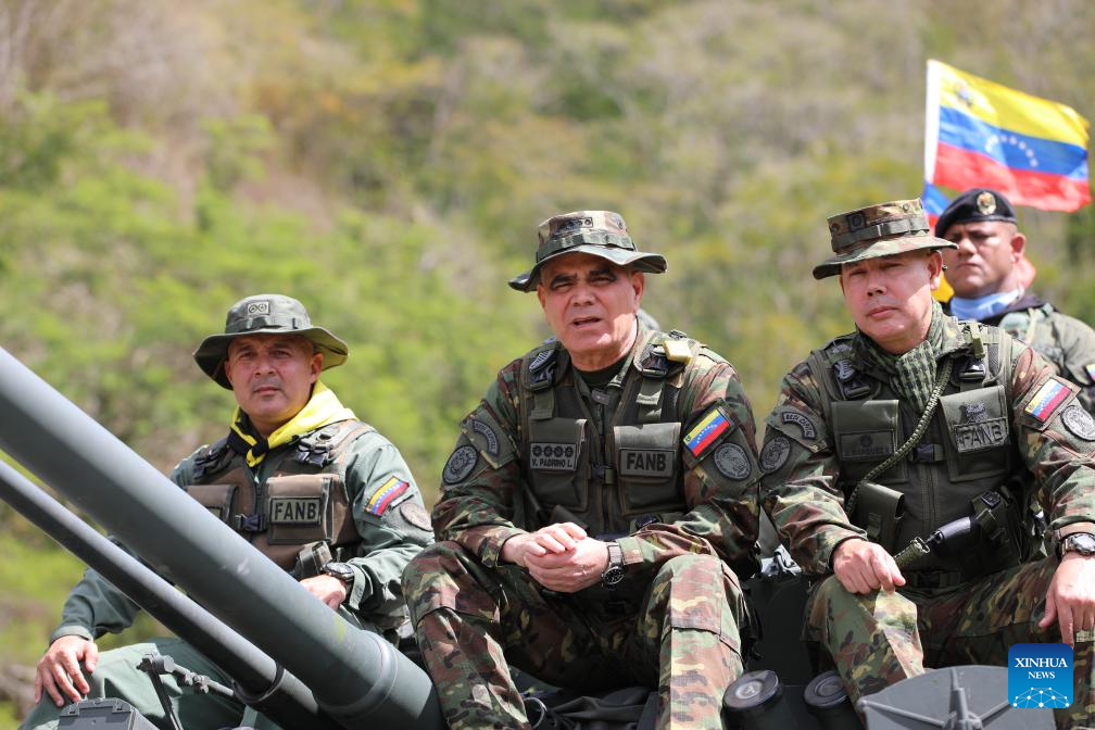 Imagen cedida por la Vicepresidencia Sectorial de Defensa y Soberanía de Venezuela del ministro de Defensa venezolano, Vladimir Padrino López (c), participando durante los ejercicios militares Escudo Bolivariano 2025, en el Fuerte Tiuna, en Caracas, Venezuela, el 22 de enero de 2025. El presidente venezolano, Nicolás Maduro, activó el miércoles los ejercicios militares Escudo Bolivariano 2025 que se desarrollarán en todo el territorio nacional, incluido el espacio aéreo y las áreas marítimas de Venezuela. (Xinhua/Vicepresidencia Sectorial de Defensa y Soberanía de Venezuela)