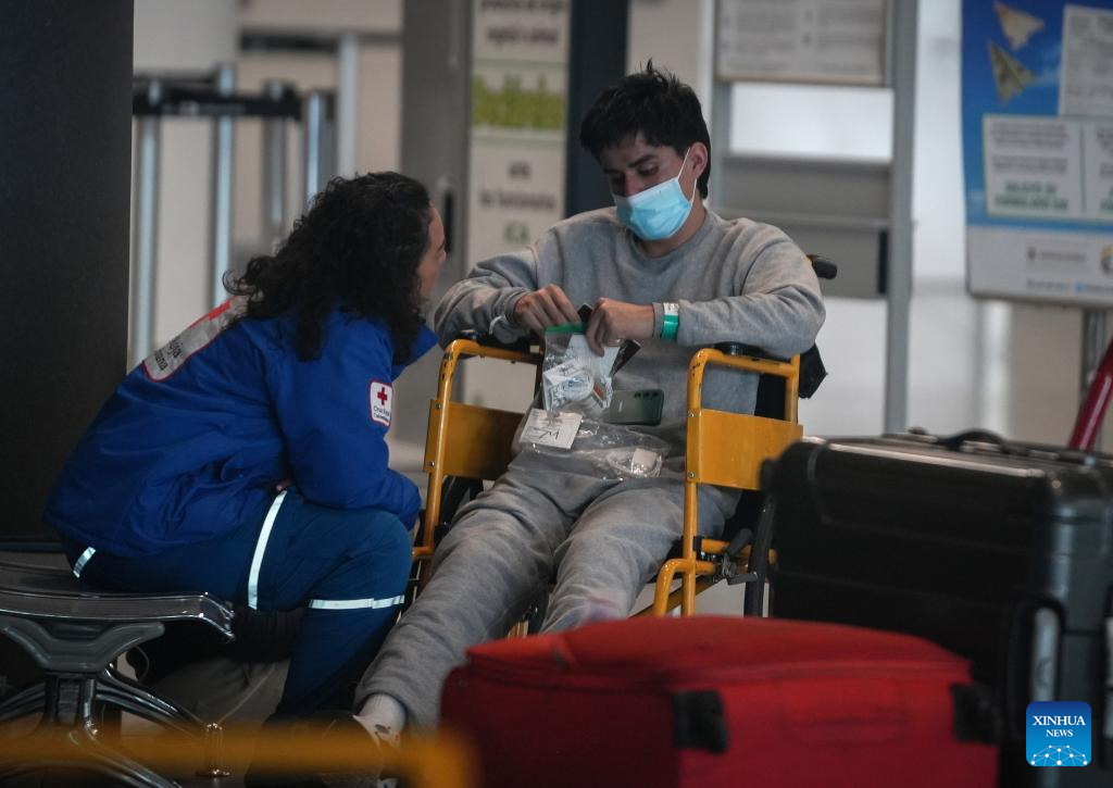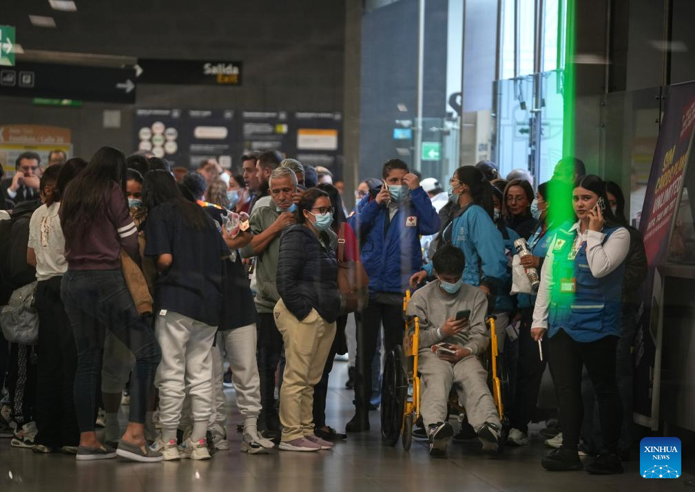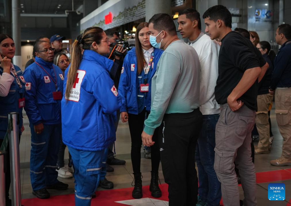 BOGOTA, 28 enero, 2025 (Xinhua) -- Un grupo de migrantes deportados procedente de Estados Unidos es atendido por personal de la Cruz Roja Colombiana a su llegada al Aeropuerto Internacional El Dorado, en Bogotá, Colombia, el 28 de enero de 2025. Dos aviones de la Fuerza Aeroespacial Colombiana aterrizaron el martes en la ciudad de Bogotá procedentes de Estados Unidos con 201 colombianos deportados, confirmó el presidente de Colombia, Gustavo Petro. (Xinhua/Andrés Moreno)