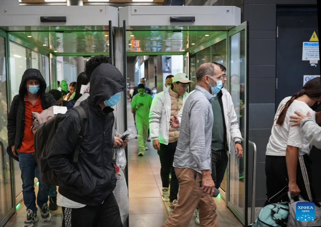 BOGOTA, 28 enero, 2025 (Xinhua) -- Un grupo de migrantes deportados procedente de Estados Unidos cruza por la puerta de llegadas internacionales del Aeropuerto Internacional El Dorado, en Bogotá, Colombia, el 28 de enero de 2025. Dos aviones de la Fuerza Aeroespacial Colombiana aterrizaron el martes en la ciudad de Bogotá procedentes de Estados Unidos con 201 colombianos deportados, confirmó el presidente de Colombia, Gustavo Petro. (Xinhua/Andrés Moreno)