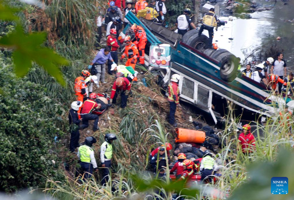 MÉXICO, 10 feb (Xinhua) -- Decenas de personas fallecidas dejó un trágico accidente vial ocurrido la madrugada de hoy lunes en la capital de Guatemala, cuando un autobús extraurbano cayó a un barranco a orillas de la Calzada La Paz, mientras que varios heridos fueron trasladados al Hospital General San Juan de Dios, reportaron medios locales.