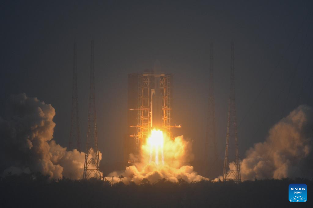 Un grupo de satélites de órbita terrestre baja es lanzado a bordo de un cohete portador modificado Gran Marcha-8 desde el sitio de lanzamiento de Wenchang, en la provincia de Hainan, en el sur de China, el 11 de febrero de 2025. El grupo de satélites, el segundo de su tipo que formará parte de una constelación de internet, fue lanzado a las 17:30 (hora de Beijing). Los satélites entraron en la órbita preestablecida con éxito. (Xinhua/Zhang He)