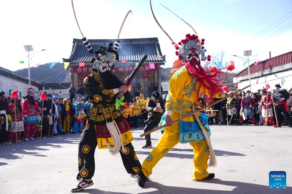 BEIJING, 12 febrero, 2025 (Xinhua) -- Artistas populares realizan una presentación, en el distrito de Jingxing, en la provincia de Hebei, en el norte de China, el 12 de febrero de 2025. Diversas actividades se llevaron a cabo en toda China para celebrar el Festival de las Linternas, que cae el decimoquinto día del primer mes del calendario lunar chino. (Xinhua/Liang Zidong)