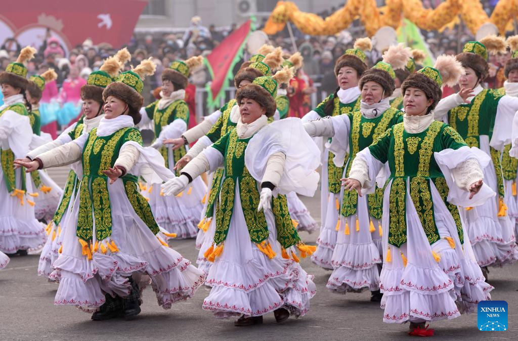 BEIJING, 12 febrero, 2025 (Xinhua) -- Artistas populares realizan una presentación, en la ciudad de Changji, en la región autónoma de la etnia uygur de Xinjiang, en el noroeste de China, el 12 de febrero de 2025. Diversas actividades se llevaron a cabo en toda China para celebrar el Festival de las Linternas, que cae el decimoquinto día del primer mes del calendario lunar chino. (Xinhua/Zhang Xiaocheng)